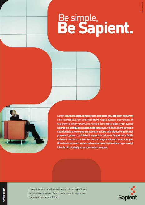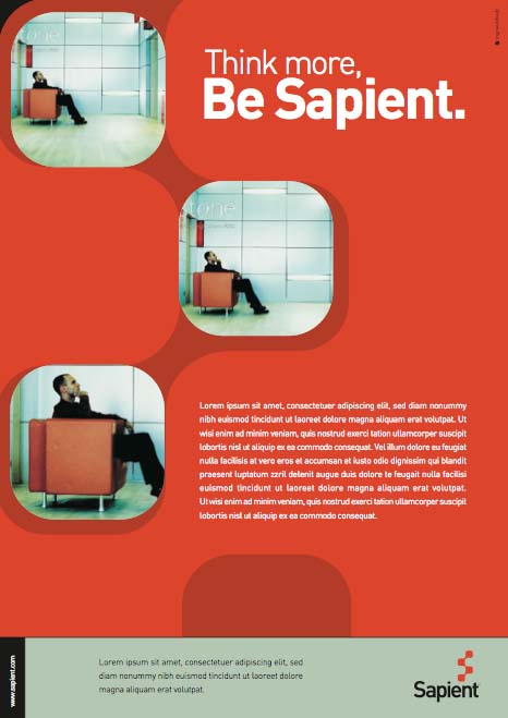 SAPIENT Proviene da una costola del gruppo CUNEO ed esercita nel mondo della New Economy con sede a Milano. A (9)lab, tramite la collaborazione con TMP Worldwide di Bergamo, è stato affdato l'incarico di produrre una pagina istituzionale da inserire su testate nazionali nel settore della ricerca del personale, di studiare un nuovo leaflet, di creare nuovi headline.