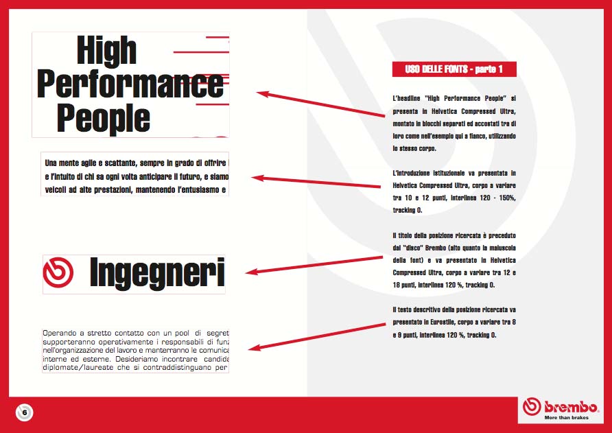 Corporate Guidelines per il settore Employer Branding della nota azienda produttrice di freni. A (9)lab, tramite la collaborazione con TMP Worldwide, è stato affdato l'incarico di produrre la guida all'utilizzo degli elementi grafici relativi alla comunicazione su testate locali e nazionali.