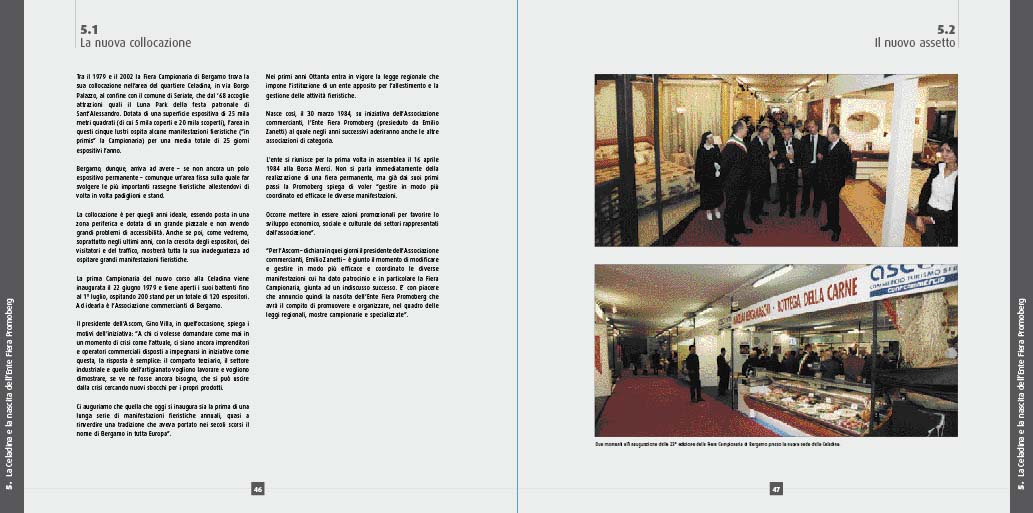Monografia della Fiera Nuova di Bergamo, A (9)lab è stato conferito l'incarico di studiare tutto il prodotto, dal layout iniziale, al formato, alla scelta delle immagini, al taglio di inserimento, copertina e carta. In collaborazione con ASCOM e Bergamo Fiera Nuova