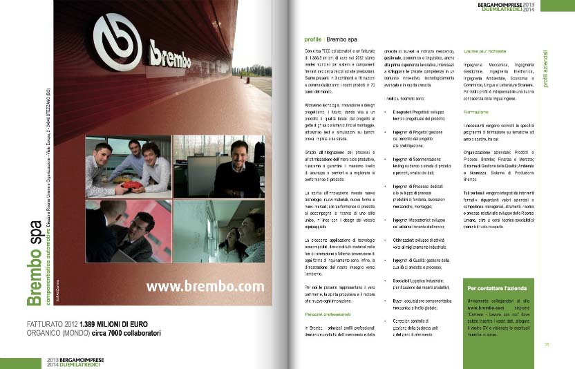 Vanta i nomi delle maggiori aziende Bergamasche. Il prodotto è stato creato in toto all'interno, dalle gabbie grafiche, alla campagna adesioni, alla distribuzione, al sito internet.